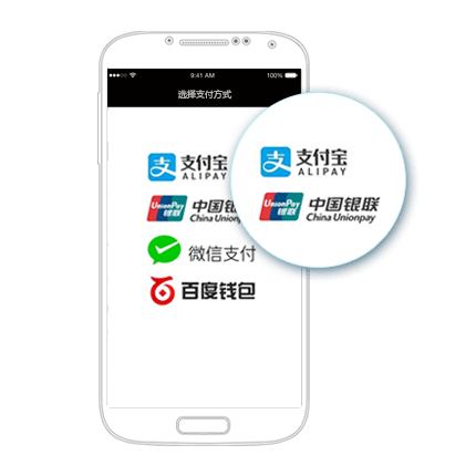 在线支付,为iOS/Android原生/H5 App提供支付解决方案:支持微信支付、支付宝支付、银联手机支付、百度钱包等。